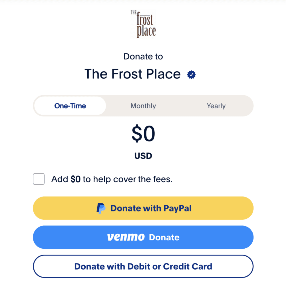 Friends of the Frost Place tax ID number is 26-4497702. Your contribution is tax-deductible to the extent allowed by the law.