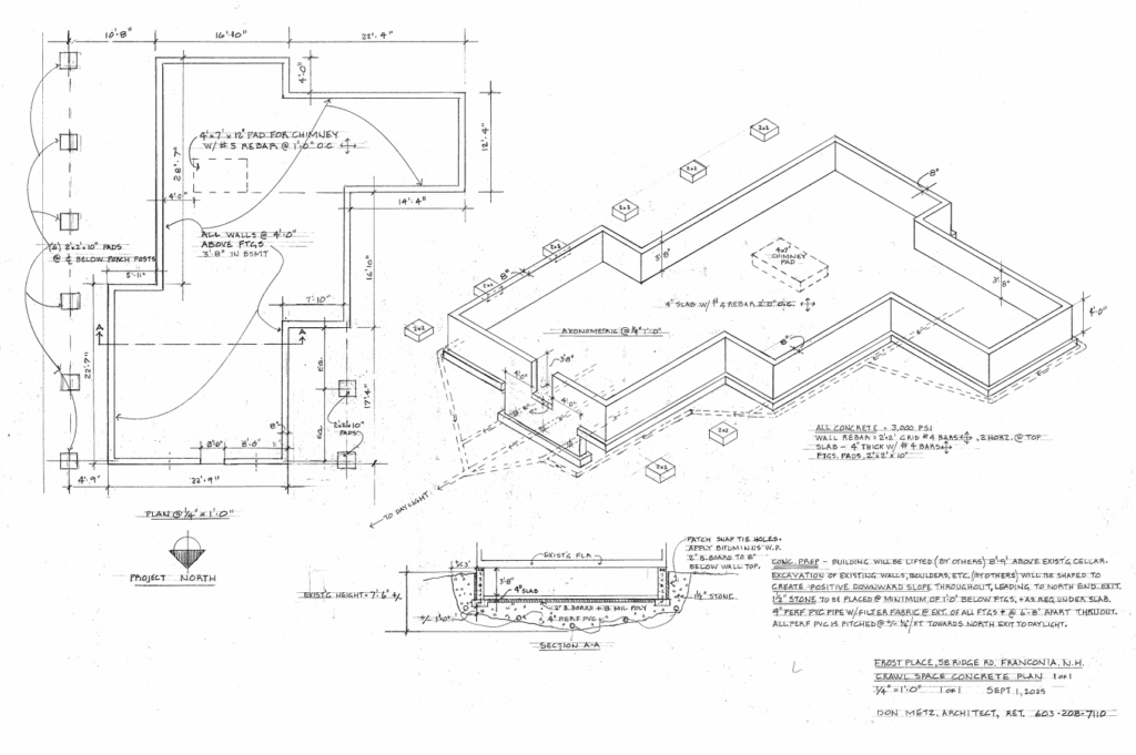 I’m writing with some very exciting news. But first, a bit of relevant background: In 1856, a farmer named Ezra G. Hunt built a modest little house on Ridge Road in Franconia. This house became home to Robert Frost and his family from 1915 to 1920. Today, thanks to the partnership of the Frost Place Board, the Town of Franconia, and generous individual supporters, we have been working steadily to restore the home. We now have a plan to address the area that has long been the source of many woes – the crude, wet dirt cellar – which will protect Frost’s former home for the future.